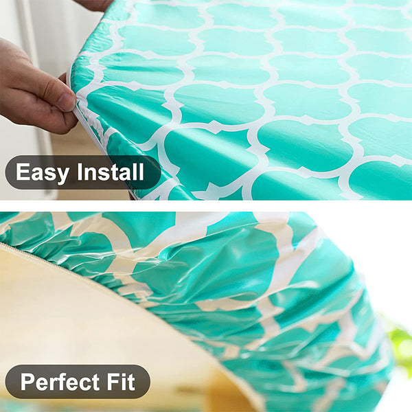 The tablecloth features a flannel backing and elastic edges to keep the tablecloth snug and won't move and fall off.