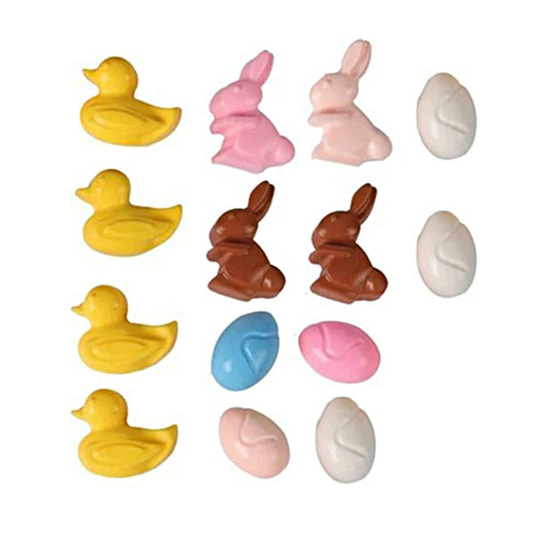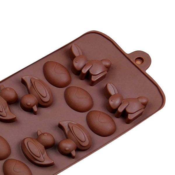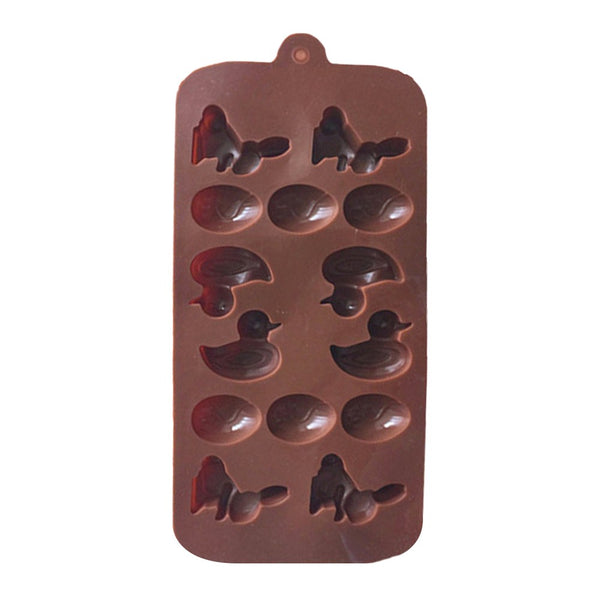 This playful and versatile silicone mold tray features duck, bunny, and egg shapes for crafting charming chocolates and confections.