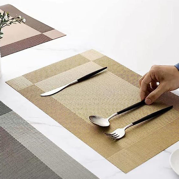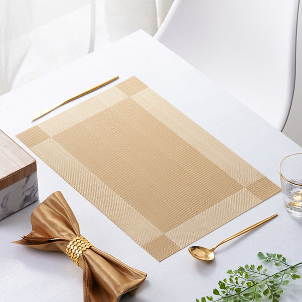 Set of 6Pcs Placemats with Coasters Heat Stain Non-Slip Washable Dining Table Place Mats Gold