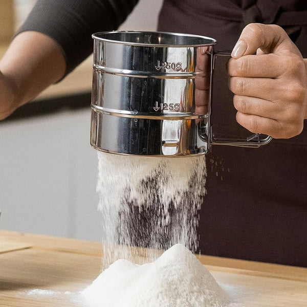 - Revolutionize your baking routine with our one-hand press crank design semi-automatic flour sifter.
