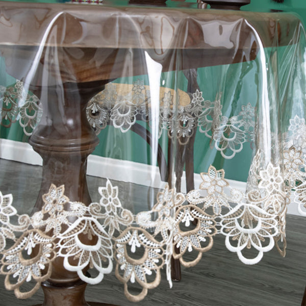 Table Cloth Waterproof PVC Round Dining Transparent Lace Oilproof Tablecloth 130 cm Diameter-Style 4