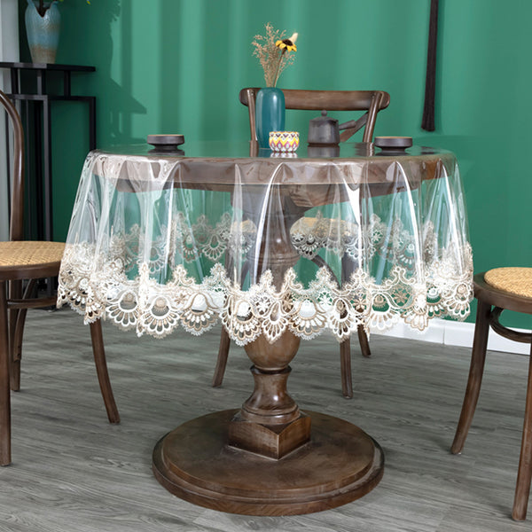 Table Cloth Waterproof PVC Round Dining Transparent Lace Oilproof Tablecloth 80 cm Diameter-Style 3
