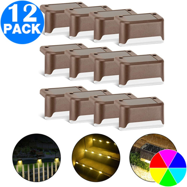 12PCS Solar Powered Deck Lights Warm White Lamps Set Brown