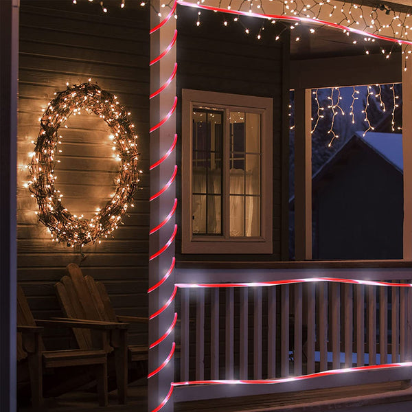 Featuring seamless red and white stripe patterns on the entire rope lights and providing 360-degree light distribution, this candy cane rope light becomes a good option for wrapping around the deck, outlining pathways, entrances, garden fences, balconies, doorways and more.