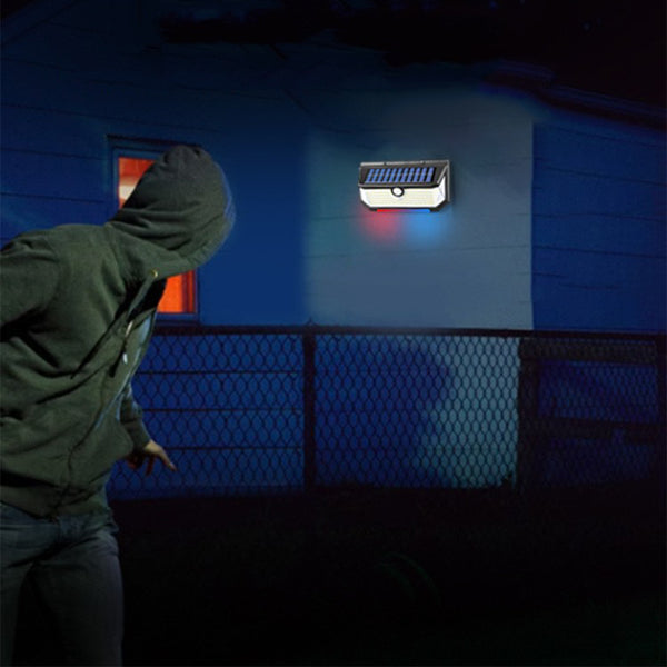 - Designed with 3 modes: ①Automatic white light on for 20 seconds when motion is detected, ②Low brightness staying on all night, while white light on for 20 seconds when motion is detected③ Automatic white light on when motion is detected, and red and blue light keeping flashing.