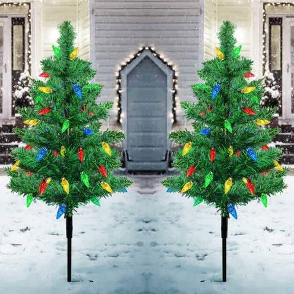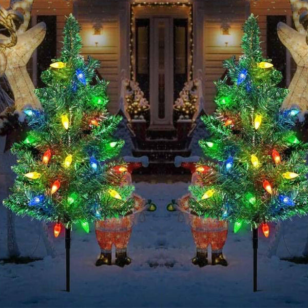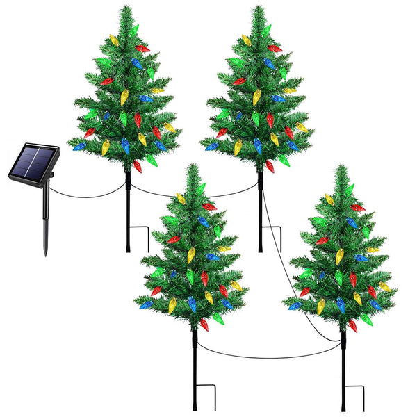 The 4-in-1 solar Christmas garden stake lights feature festive Xmas tree designs with 80 bright strawberry-shaped led lights, perfect for illuminating your garden or yard during the holiday season.