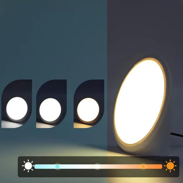 A versatile LED light therapy lamp designed to help combat Seasonal Affective Disorder with adjustable brightness and color temperature settings.