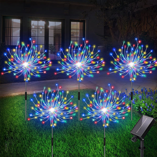 - 5 solar-powered firwork lights are connected in wires and use a 1200mah large-capacity solar panel to provide power, which improve the stability of power output.