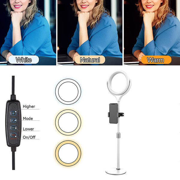 Desk Ring Light with Stand and Phone Holder for Online Meeting Live Streaming Makeup Video Recording White