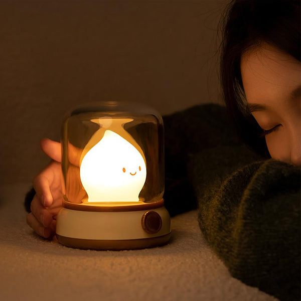 Cute Kerosene Lamp Silicone Campfire Night Light Desktop LED Decorative Light Yellow