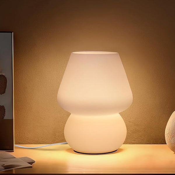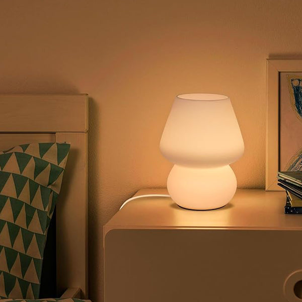 With mushroom shape, this glass table lamp can be dimmed, suitable for nightstands, desks, living rooms, etc.