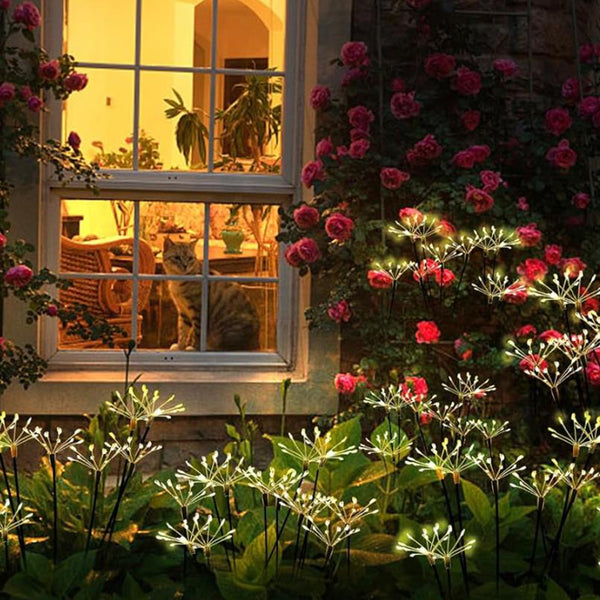 The solar fireworks lights with 6 elegant branches, resembling fireworks blooming in the darkness of the night, which is perfect for adding pizzazz to gardens.