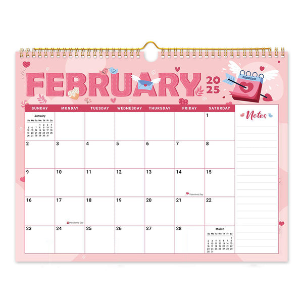 - This spiral calendar features a twin-wire binding that allows for smooth page flipping and lies flat against the wall, providing a sleek and functional hanging calendar option.