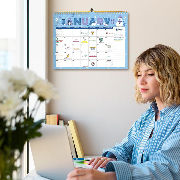 - With cartoon designs inspired by major holidays, whether it’s a family calendar in your home or an office calendar to add a playful touch to your workspace.