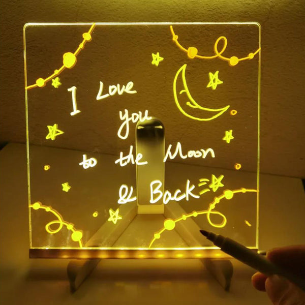 ClearLED Note Board Lighted Acrylic Dry Erase Message Board with Adjustable Stand and 7 Colorful Pens