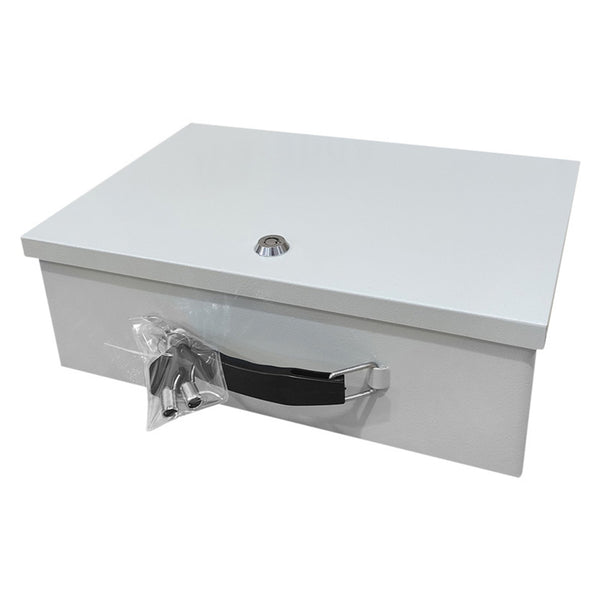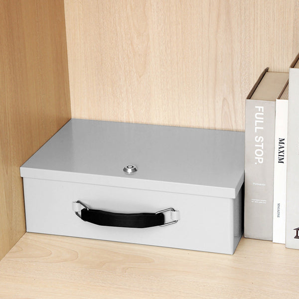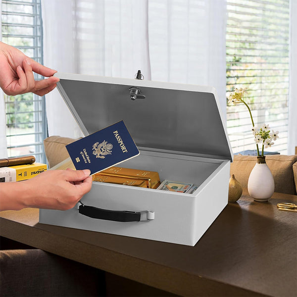 Keep your important documents and personal items secure with this fire-resistant document storage box, equipped with two keys and a pad for added privacy and protection.