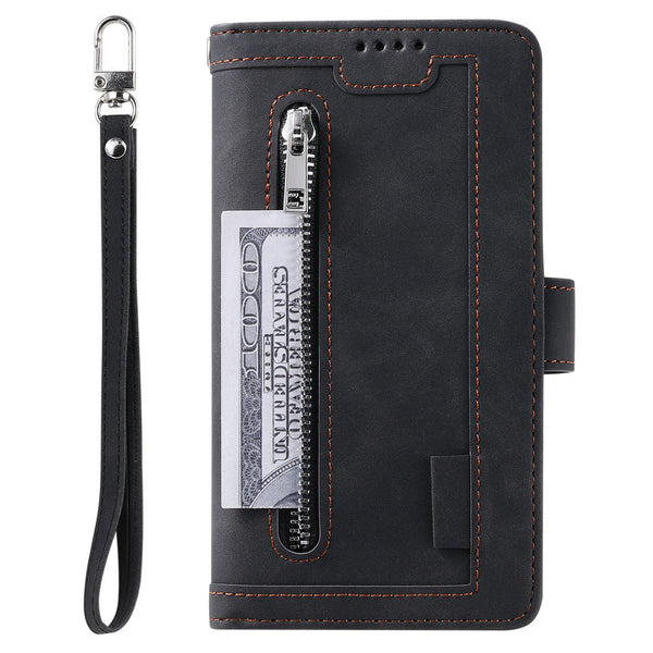 Luxury retro leather zipper wallet case card holder slot full shockproof flip stand cove for iPhone 13