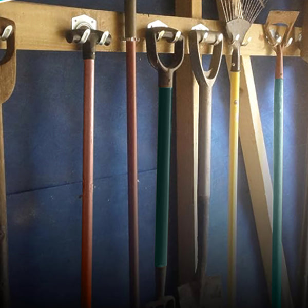 • Designed to accommodate a wide range of tools, from shovels and brooms to hoses and power cords, offering versatile storage solutions.
