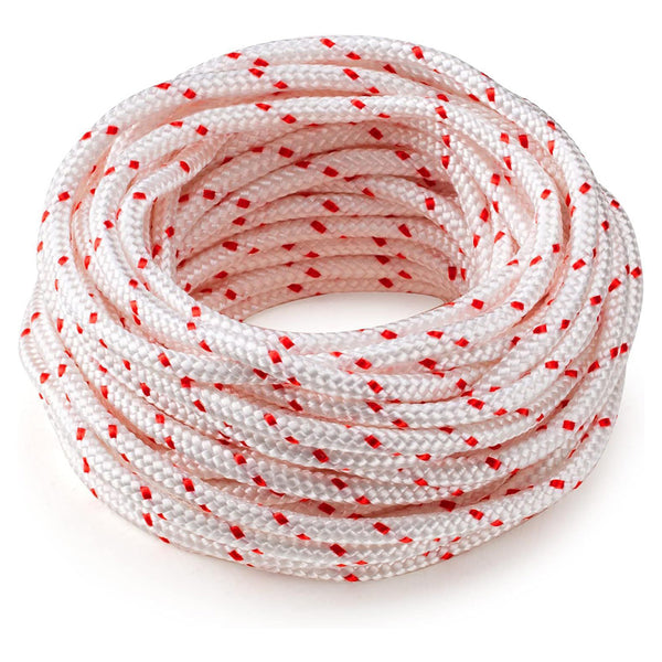 This starter rope with handle set is designed to replace broken recoil starter cords in gas-powered equipment, making engine starting easier and more efficient.