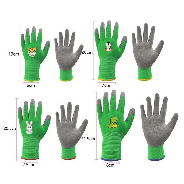 - The kids gardening gloves are based in pink/green/blue/yellow, and decorated with cartoon animal patterns, popular with kids, let your children love gardening work and have more fun.