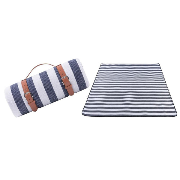 Outdoor Foldable Picnic Blanket Festival Beach Blanket for Camping Blue and White Pinstripes 150 X 200 CM