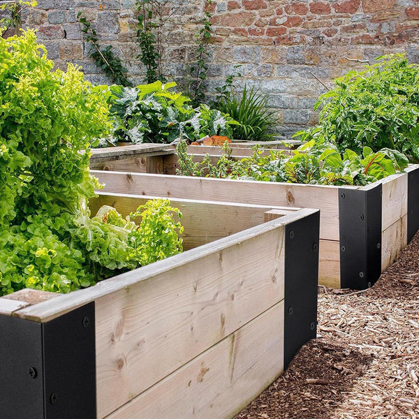 These corner brackets can fix your garden bed, provide plenty of room for your plants to grow, don't have to worry about grass creep or weed seeds dropping over the edge or excessive bending over for maintenance.