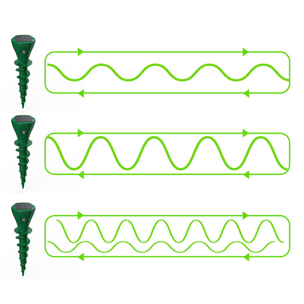 • Featuring three modes—Alert, Rapid, and Symphony—it will automatically cycle through these settings every 24 hours to effectively deter moles with varying ultrasonic frequencies and vibrations.