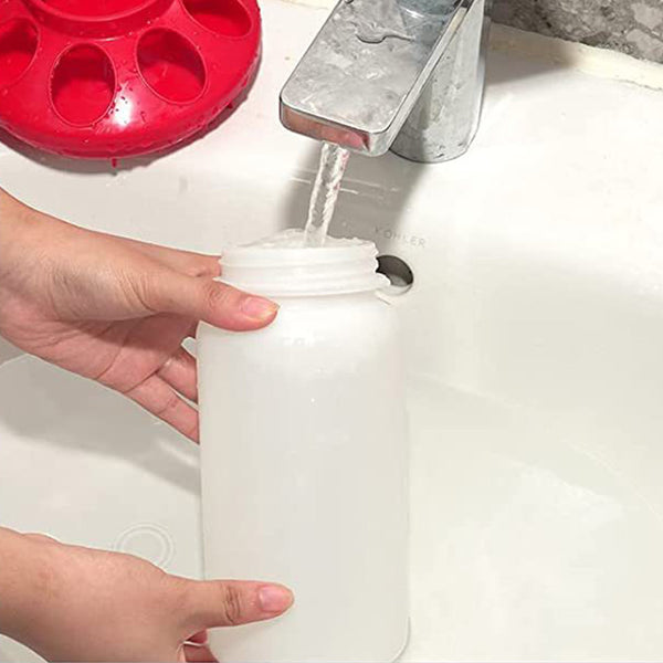 - Simply turn upside down, fill with feed and water, securely twist and lock on the base and place in your brooding enclosure or chicken coop.