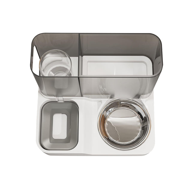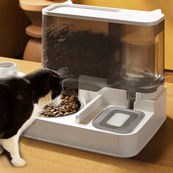 This gravity cat feeder and water dispenser utilizes a natural gravity water supply and feeding system, providing a friendly solution for convenient and straightforward pet feeding.