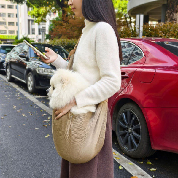 This pet shoulder bag offers a comfortable carrying experience and features a convenient storage pocket, making it ideal to used when outings with your pet.