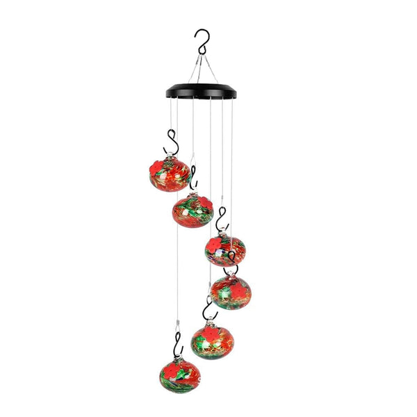 This hummingbird feeder features an innovative wind chime design, enhancing outdoor scenery while offering multiple feeding points.