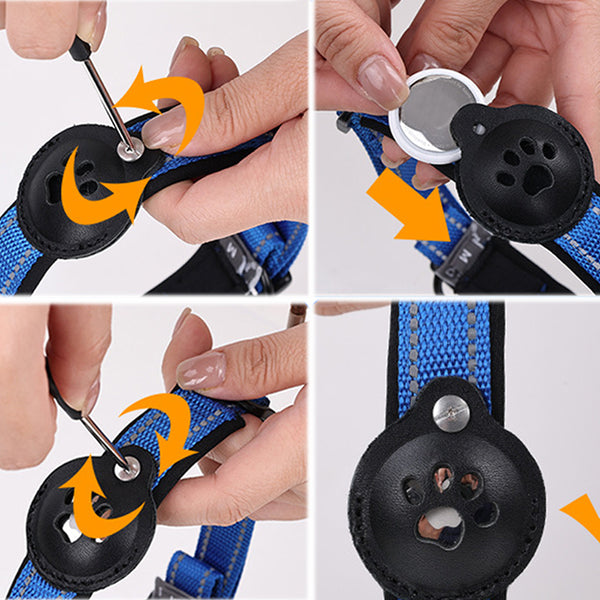 The airtag dog collar is made of comfortable material, perfectly compatible with Apple air tag, allows you to keep track of your dog.