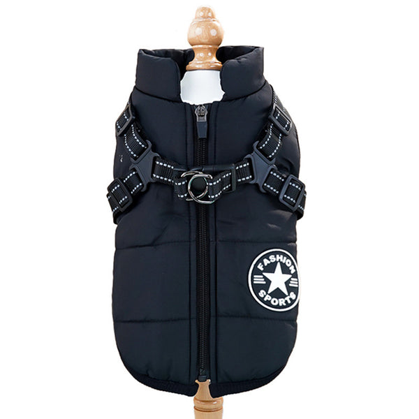 Pet Winter Jacket Padded Adjustable Warm Coats with Zipper (Black)