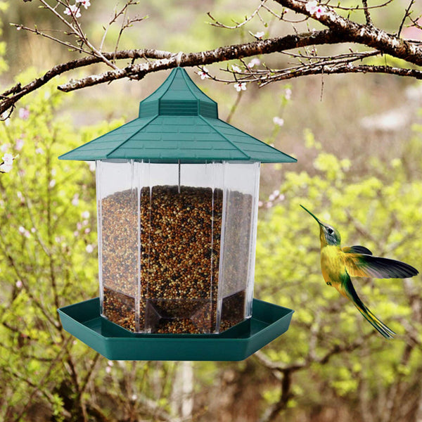 Outdoor Hanging Bird Feeder Gazebo Shape Seed Container Green