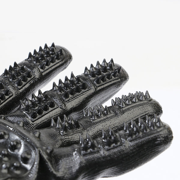 - Featuring a rubber design that mimics the sensation of a soft brush, these gloves provide a relaxing massage while grooming. Perfect for all pet temperaments, they are durable enough to withstand bathing, play biting, and daily use.