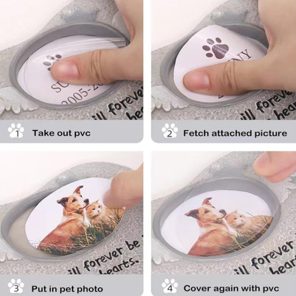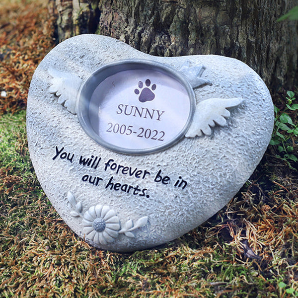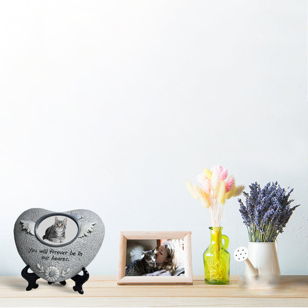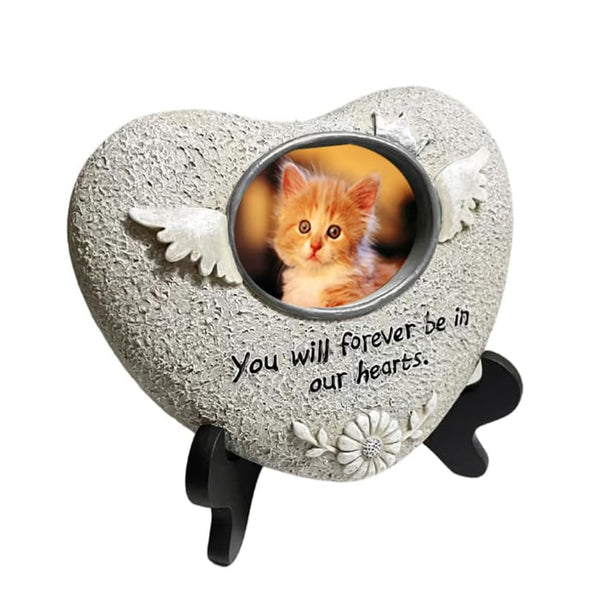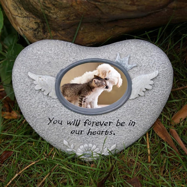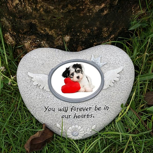 • Featuring a heart-shaped stone with a photo frame, it can hold a special photo of the beloved pet, creating a personalized keepsake to honor their memory.
