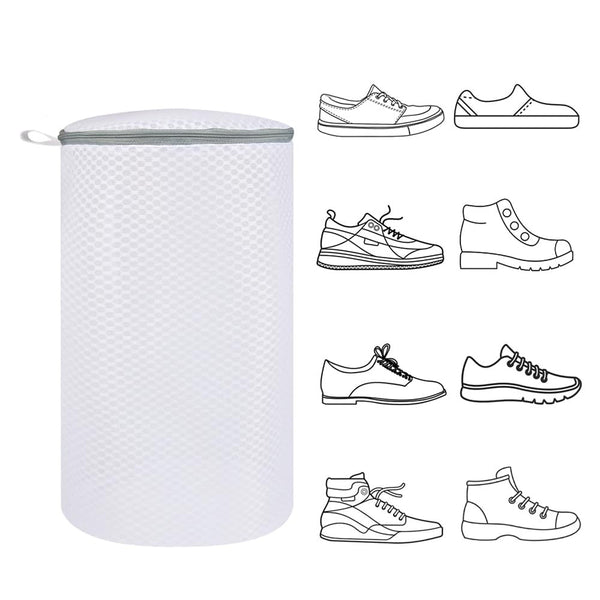 This cylinder-shaped honeycomb mesh shoe washing bag is designed to protect sneakers during machine washing, keeping them safe from tangling and damage. Its breathable mesh ensures optimal cleaning.