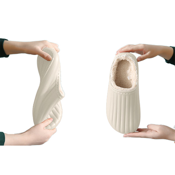 This slipper is lined with plush to keep your foot warm and comfortable in the cold winter.