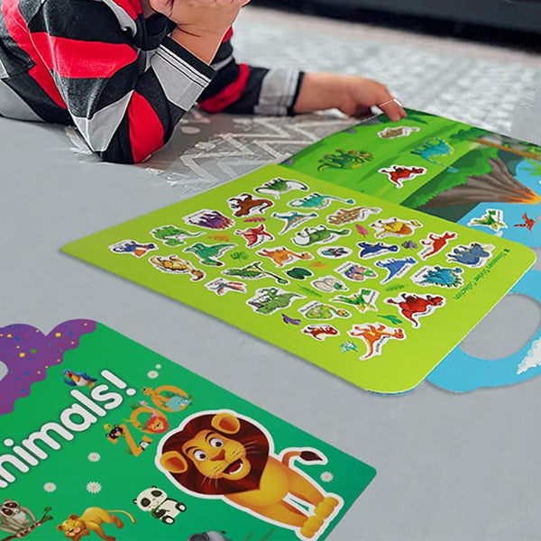 Includes 3 beautiful scenes sticker sheets: Zoo Animals, Ocean Animals, Dinosaur World. Educational toy suitable for children use their imagination to put stickers on any position of the books, you can remove them anytime and reuseable.
