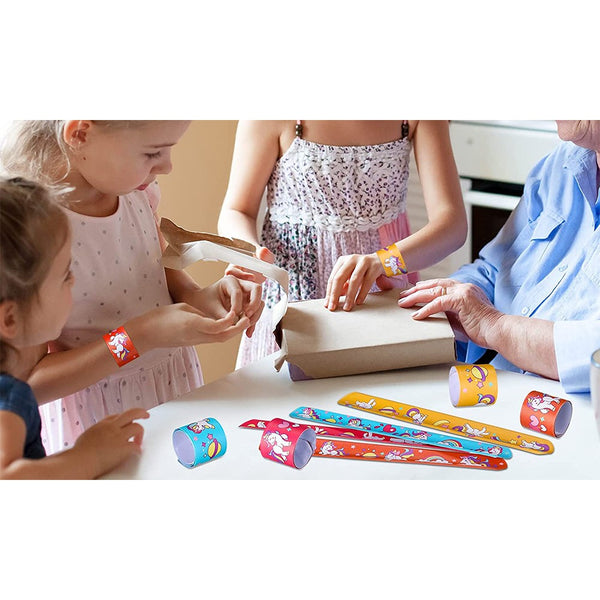 These mixed wrist snap slap bands are easy to put on and take off, the lap is covered with a variety of cute patterns to add fun to children's daily life and holidays.