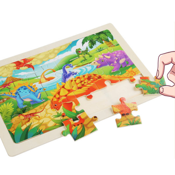A set of 4 wooden puzzles with 24 pieces each, designed for preschoolers to enhance cognitive and problem-solving skills through fun and educational jigsaw play.