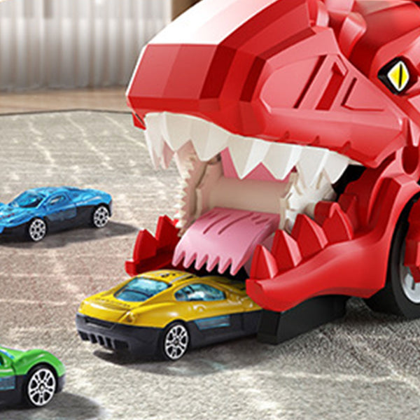 • This dinosaur truck toy can swallow 6 small cars on the road, and then the small cars can slide out from the open tailgate, simulating a car escape scene.
