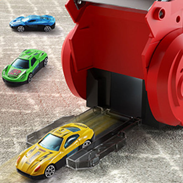 • This toy can turn into a cool upright dinosaur with 2 tracks for small racing car races to see who can slide faster and bring excitement and fun to kids.
