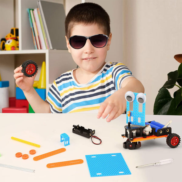 - Including a doodling robot, a balance robot, a fiber optic lamp, an obstacle-avoidance robot, a flatbed car, a wind-powered car, and a wind-powered propeller car, this robotics kit offers endless hours of engaging fun.