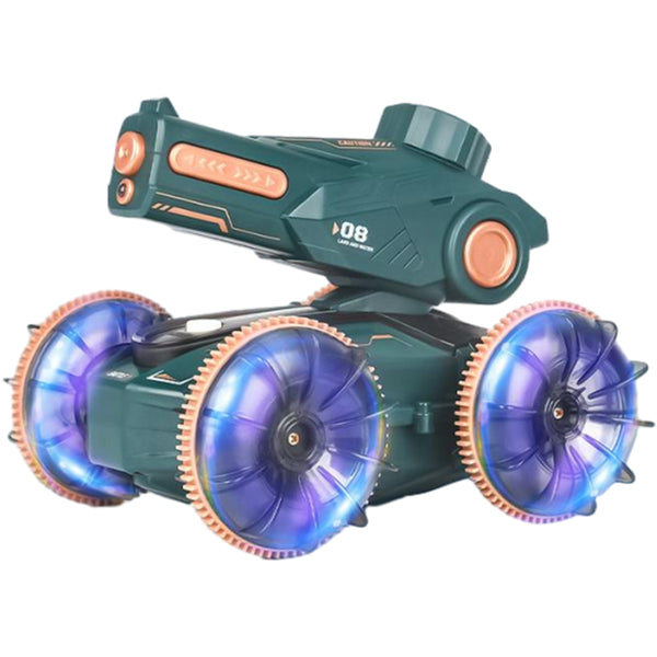 Amphibious Remote Control Car Boat Toy RC 4WD Stunt Car with Lights for Kids Green