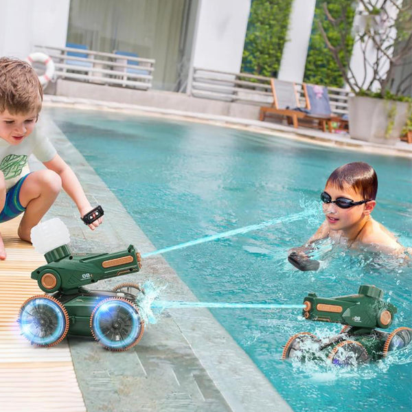 • Amphibious Remote Control Car, RC Stunt Car, Stunt Car with Lights, Remote Control Car Water Squirt Tank, Amphibious RC Gesture Stunt Boat, Outdoor Summer Beach Pool Toy, 4WD Amphibious Car Toy