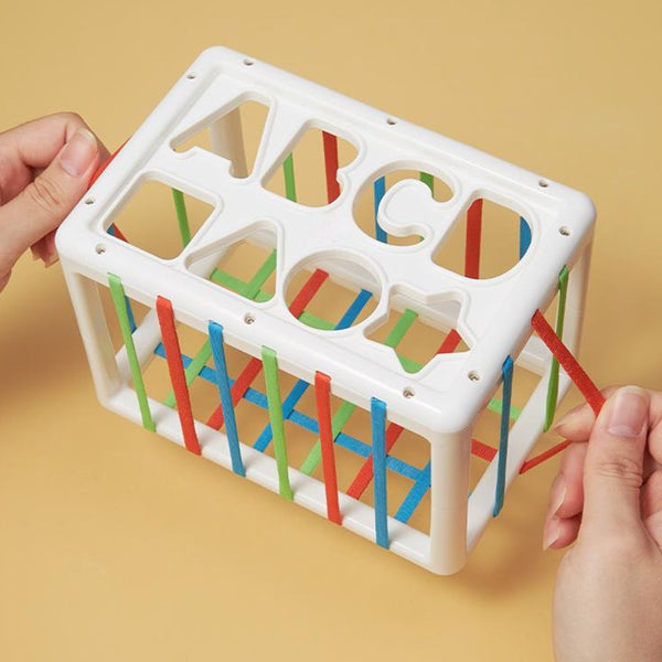 • Our baby sensory bin is rectangle, 5 sides with elastic bands covered in soft fabric, another side is shape sorting board.