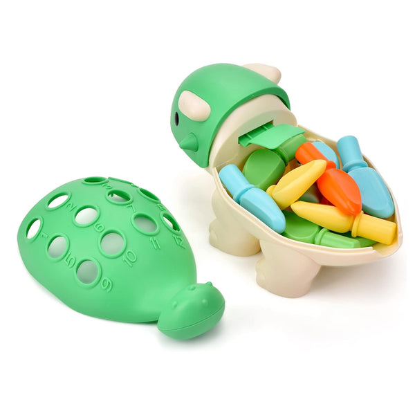 • The dinosaur's back is removable for easy storage, you can place all the pegs inside