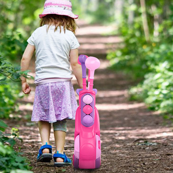 - The golf cart can keep all accessories together to ensure that they are not easy to lose, and it features an adjustable pull rod and flexible wheels, allowing children to pull it easily.