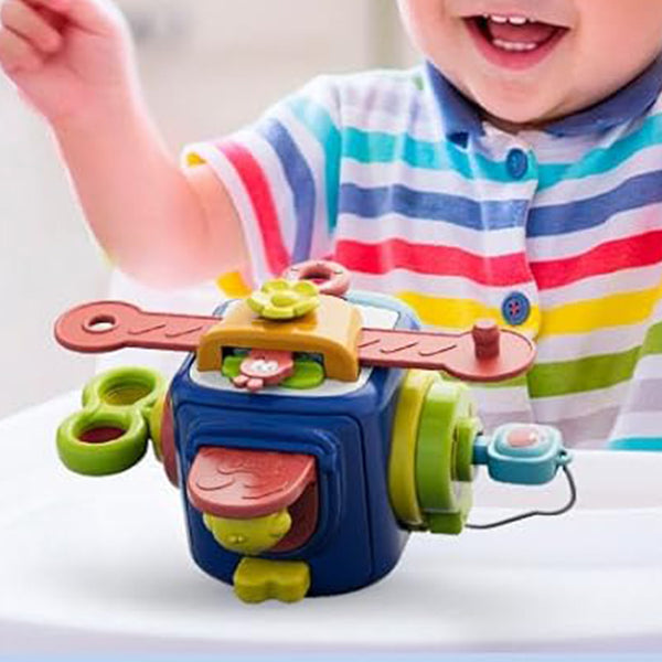 • Designed for easy to grasp, this toy helps kids develop hand-eye coordination and fine motor skills through a series of movements including pressing, pulling, inserting and rotating.